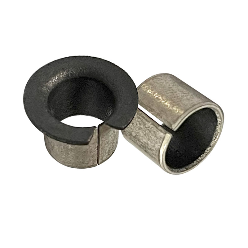 1、钢金属底层,青铜烧结层与含填充剂的聚四氟乙烯树脂层的三层复合产品。2、壁厚薄的简易型。3、在重载低速条件下显示出稳定的低摩擦系数,耐磨性优异。4、加润滑油使用时,即使是在中高速范围内也能以高PV值使用。5、耐化学药剂性优异。