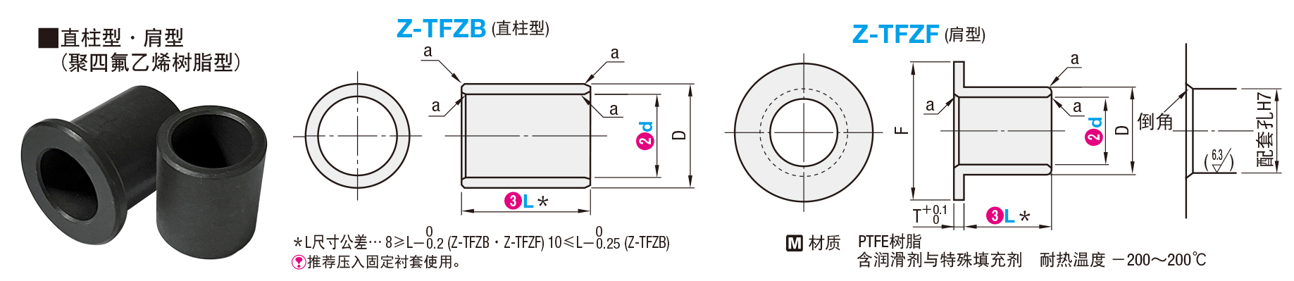 a. 可完全无供油使用,起动时的静摩擦系数低,防止运转时的粘滑。b. 即使在高速条件下,耐磨损性也优异,维持低摩擦系数。c. 耐药品性优良,符合食品卫生法。可与软质金属(铝等)的轴配套使用。
