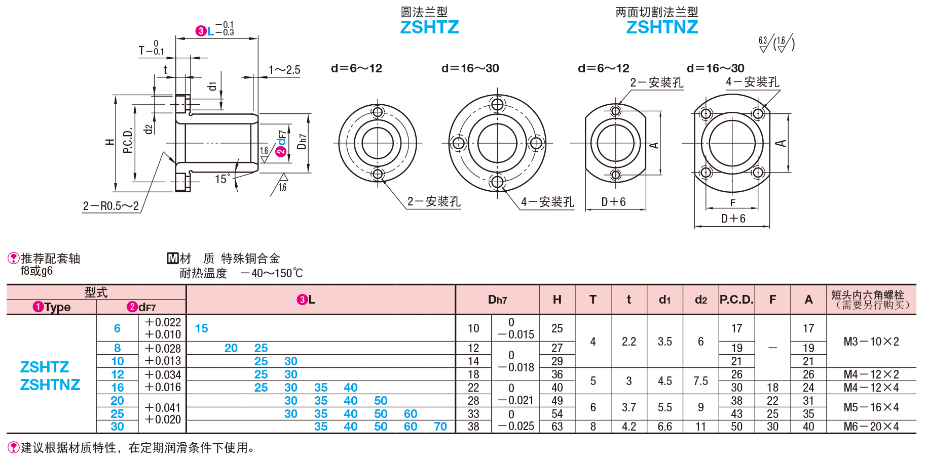 1、特殊铜合金无油衬套浸透润滑油的规格。2、在润滑油、润滑脂润滑的状态下耐磨性,耐烧结性优异。3、在供油状态下适合高速轻载的作业条件。