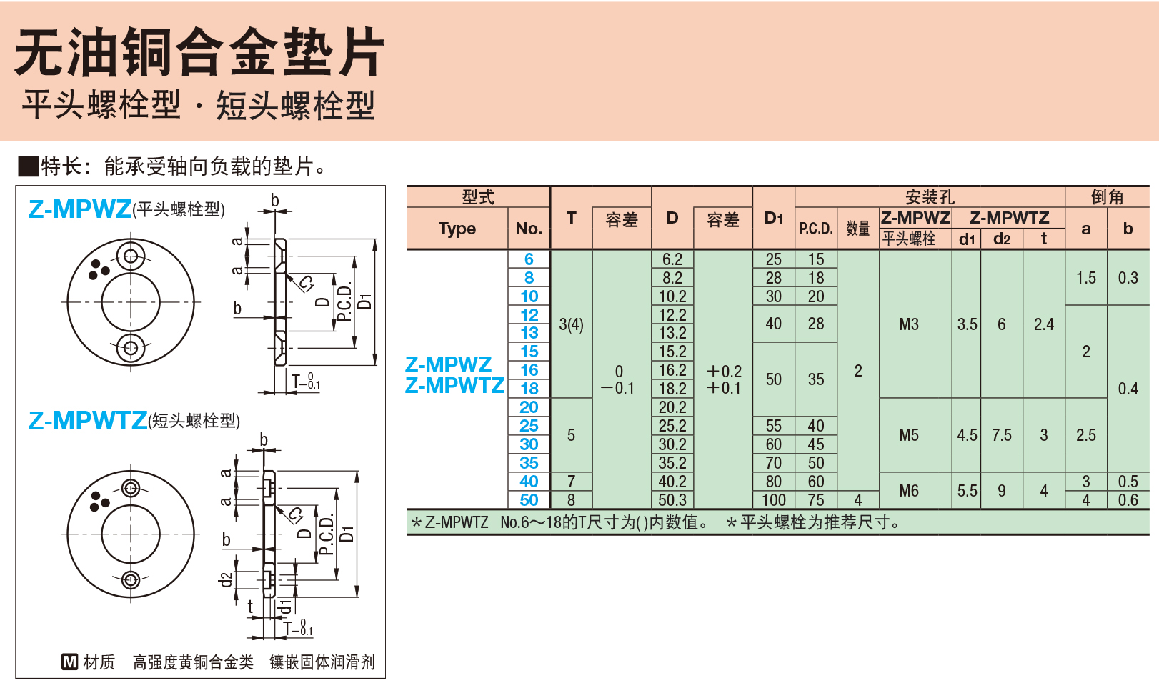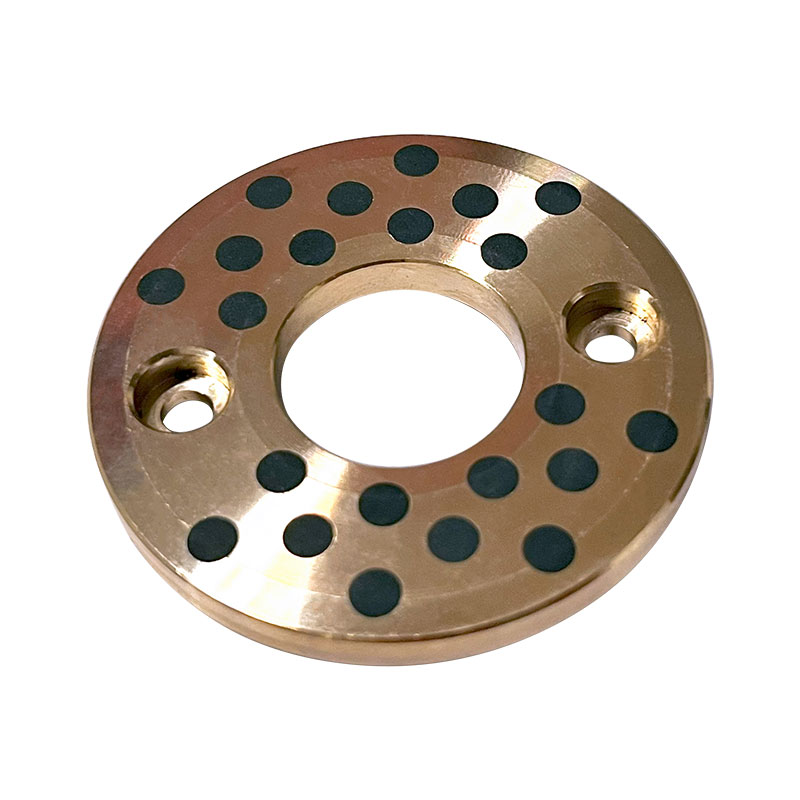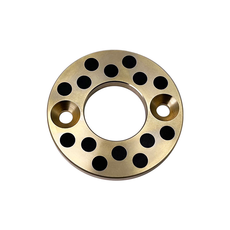 a. 在机构运转阶段,由于机构的相对运动摩擦,使得细小的润滑剂颗粒充分填充在垫片表面,产生自润润滑膜,从而降低运动原件的磨损,降噪音,使运动更平稳。b. 本产品是以高强度黄铜为基础,镶嵌了固体润滑剂的复合产品,使其在使用过程中无需加油维护,能承受轴向负载。