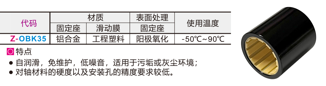 1自润滑免维护,长期干运行。
