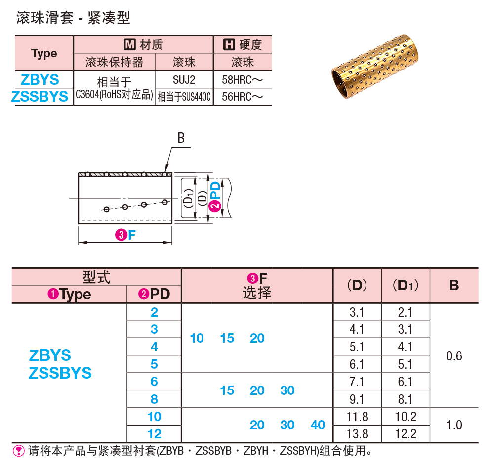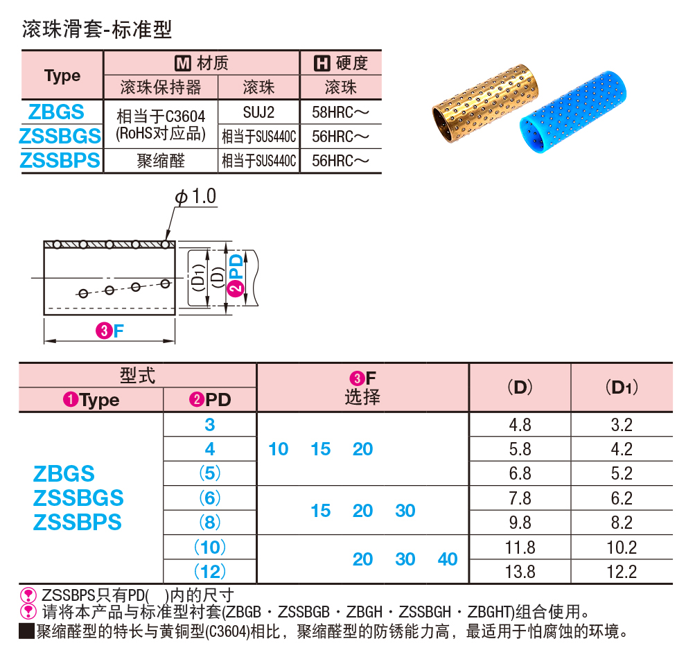可进行低摩擦的滚动运动滚珠不循环,可实现摩擦极小的滚动运动。可实现高精度的滚动运动轴和滚珠的间隙为-3~+8μm(参考值),可实现间隙很小的滚动运动。实现紧凑型设计衬套可从外径5mm,全长10mm起选择。适合省空间的设计。