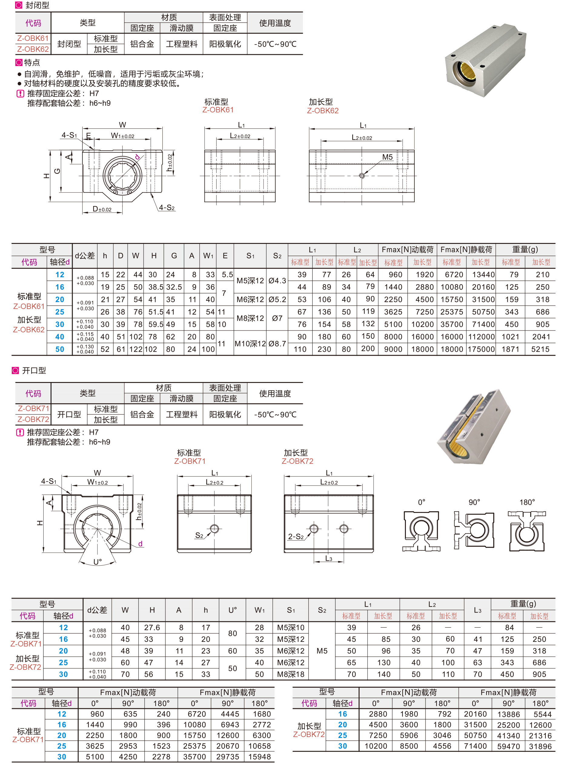 自润滑,免维护,低噪音,适用于污垢或灰尘环境,对轴材料的硬度以及安装孔的精度要求较低。